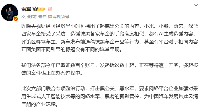 Lei Jun:“黑人公共关系”传播谣言和涂抹不同的